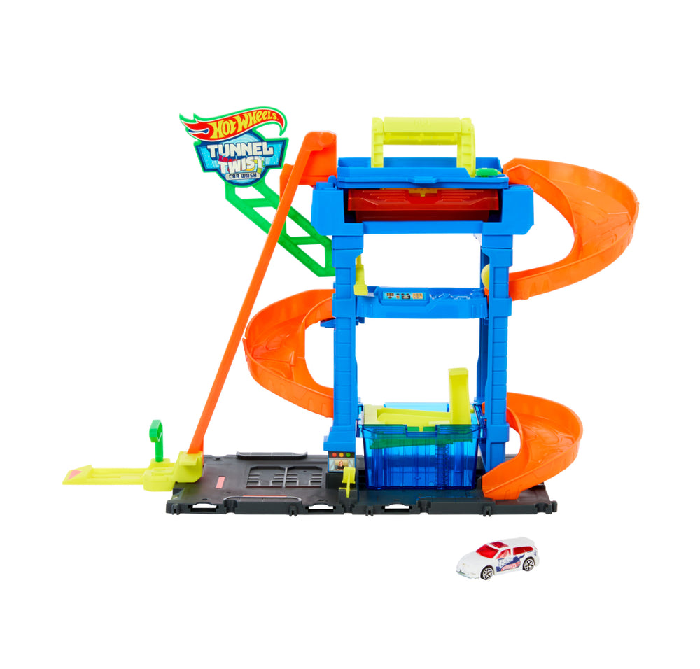 Hot Wheels Tunnel Twist Car Wash Playset with a 1:64 Color Changing Scale Vehicle